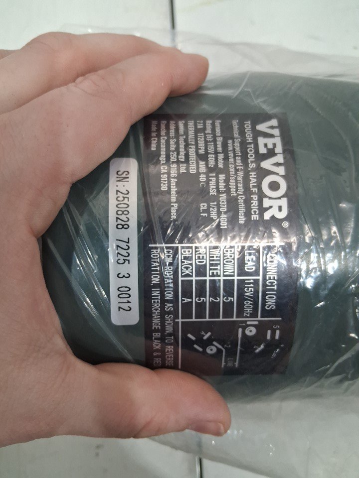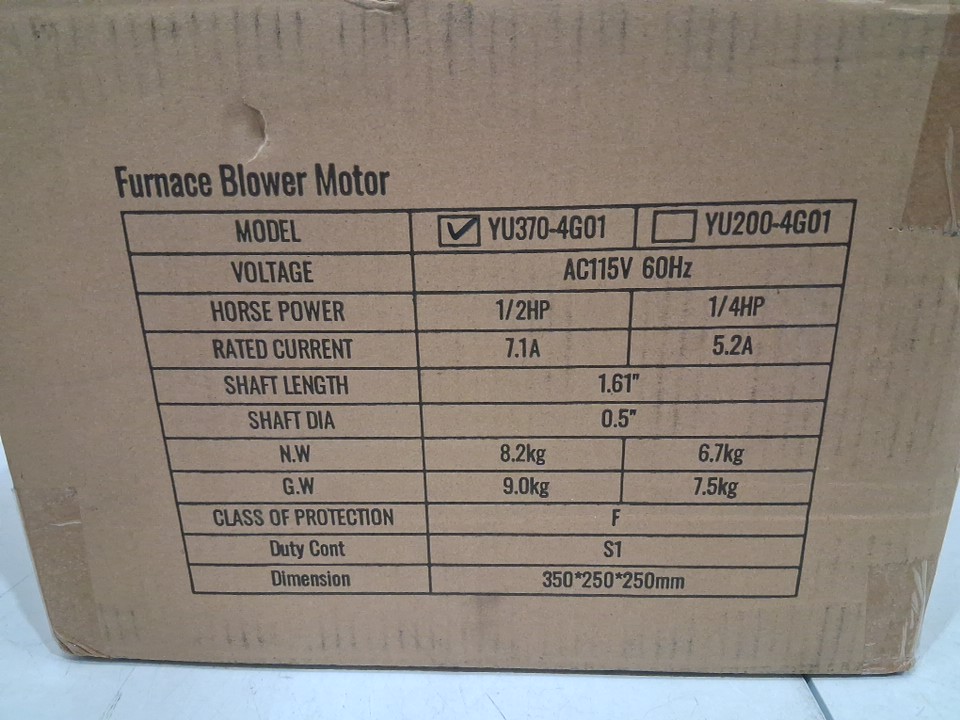 VEVOR Furnace Blower Motor - 1720RPM 115V 7.1A 1-Phase 0.78" Shaft Length, 1/2hp (model: yu370-4g01)