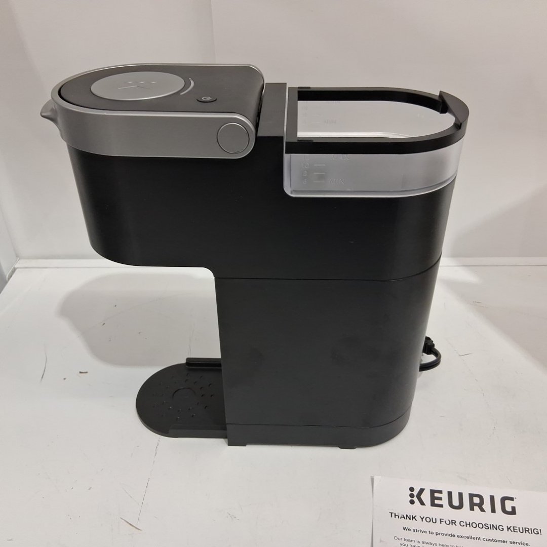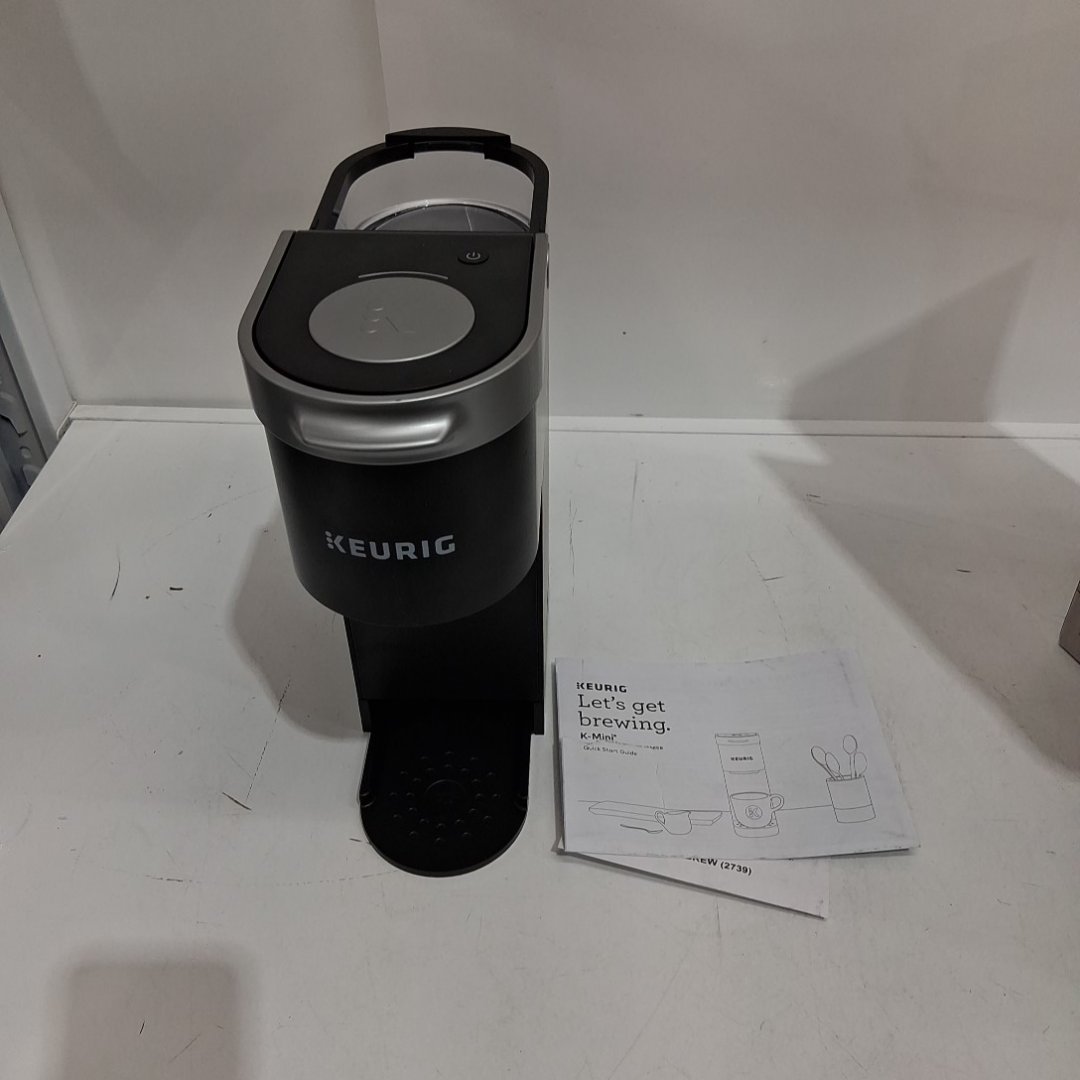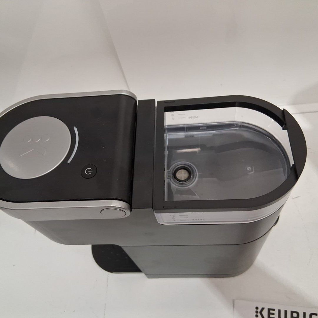 The machine is missing the top cover for the water reservoir as well as the drip tray. Tested for power.