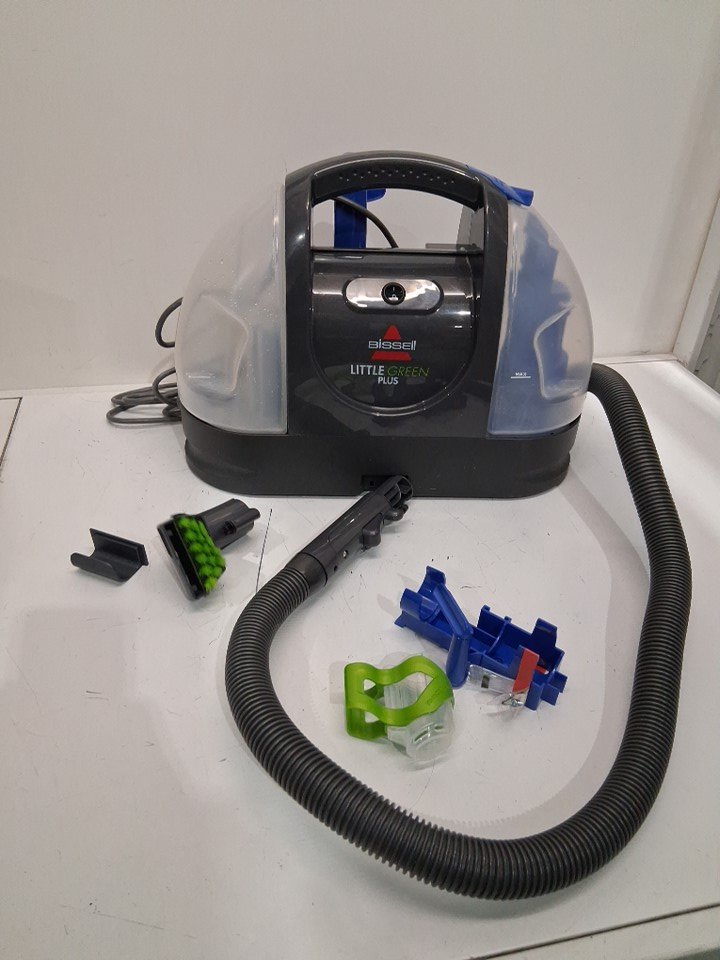 Main Nozzle attachment is missing plastic backing - Will need to be replaced for full function Item has light dirt/debris on head and in tank from prior use Tested - Working