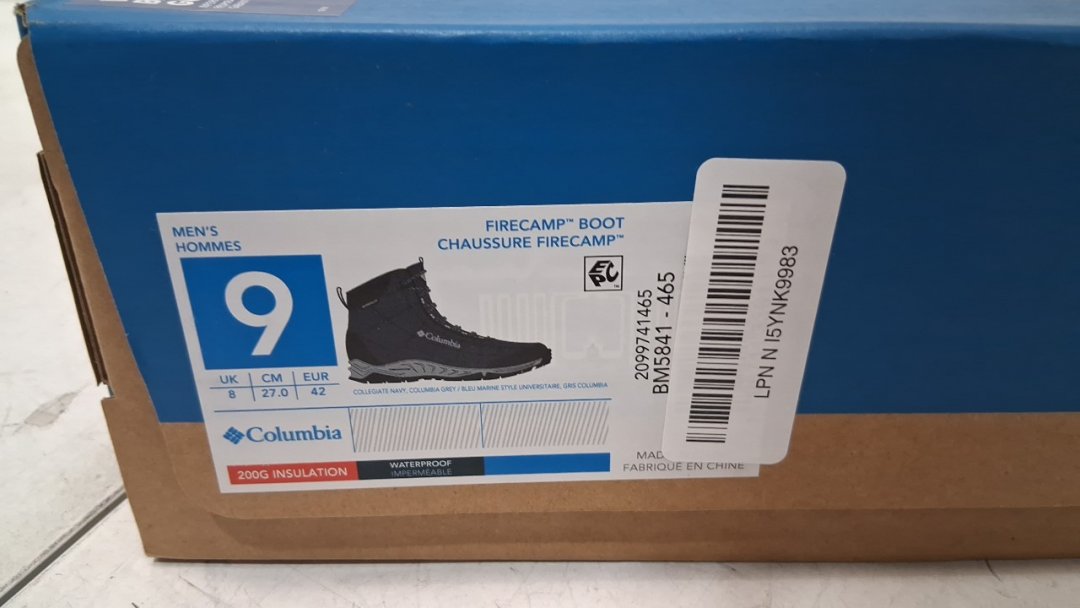 mens columbia firecamp hiking boot - size 9 - collegiate navy/bright copper