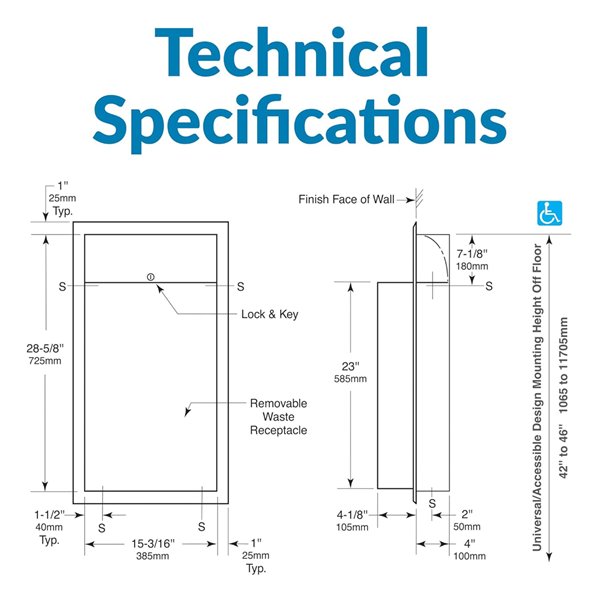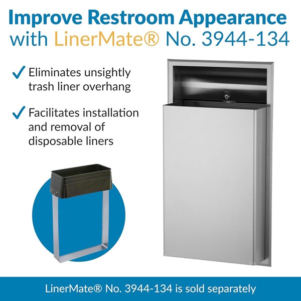 Bobrick WALL-MOUNTED Recessed Waste Receptacle FOR Commercial Restrooms - LinerMate Compatible - 12Gal - Satin Finish (Model: B-3644)