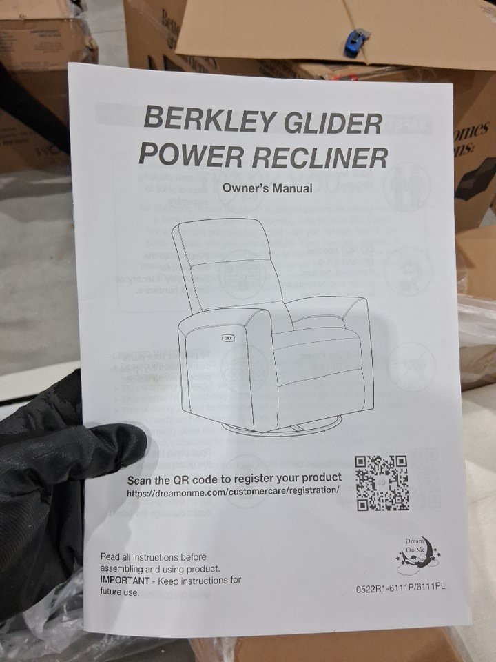 DREAM ON ME DOM FAMILY BERKLEY GLIDER POWER RECLINER CHAIR IN LEATHERETTE - 40" H - CREAM (MODEL: 6111PL-CRM)
