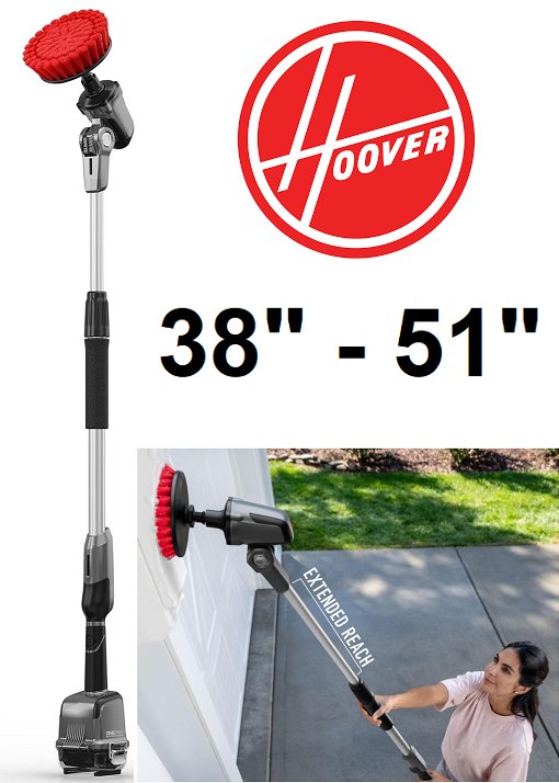 HOOVER ONEPWR38" - 51" WATER RESISTANT TELESCOPING CORDLESS SCRUBBER WITH A 6" BRISTLE BRUSH (MODEL: BH51000V)