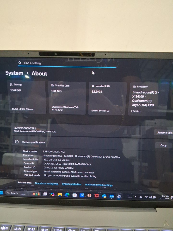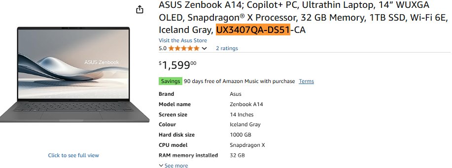 asus zenbook a14 ultrathin laptop - 14" | oled | snapdragon x | 32gb ram | 1tb ssd - iceland grey - (model: ux3407qa-ds51-ca)