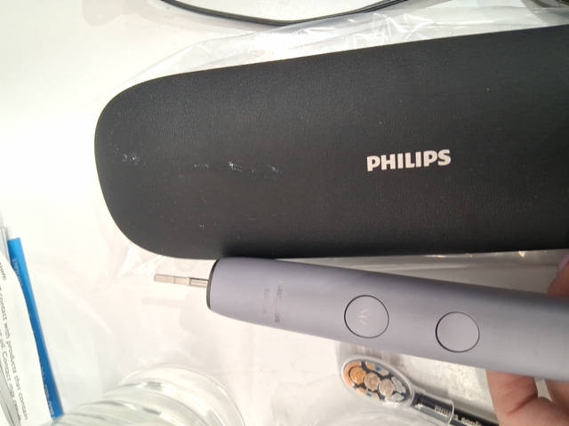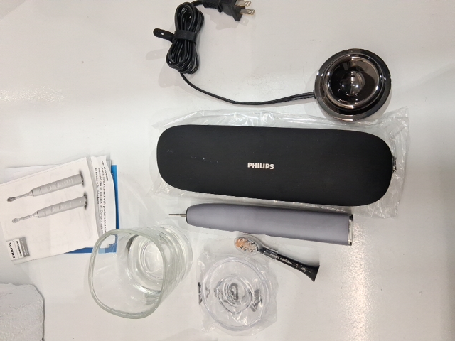 -There is a bit of toothpaste residue on the brush handle and one of the included brush heads came opened. -We recommend doing a personal clean of this item before use. -tested for power.