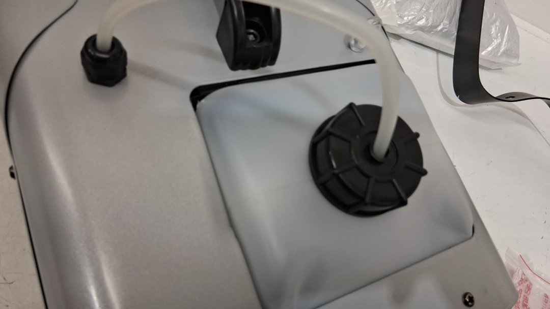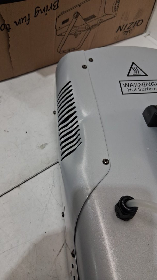 there's a large dent in the unit, the bracket is very bent, tested for power only, we don't have the liquid to test it. there's also some lifting near the water reservoir. please see photos