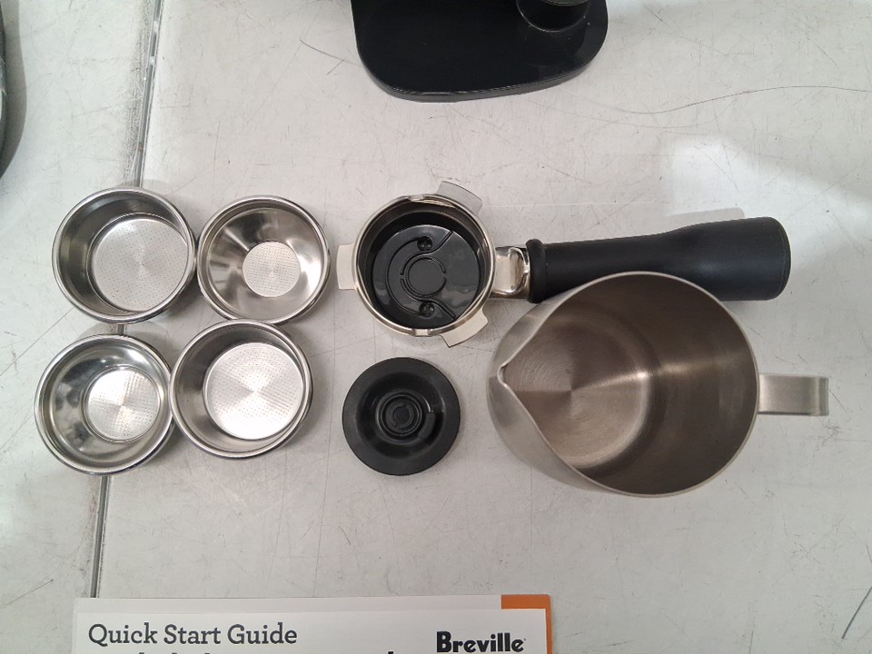coffee residue from previous use on machine and a few attachments, item has been tested for power