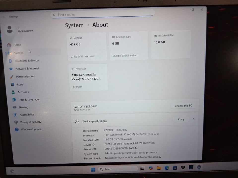 ACER NITRO v gaming laptop - 15.6" | 144hz | intel core i5-13420h | 16gb ddr5 | 512gb ssd | nvidia rtx 3050 - black - (model: ANV15-51-55QN)