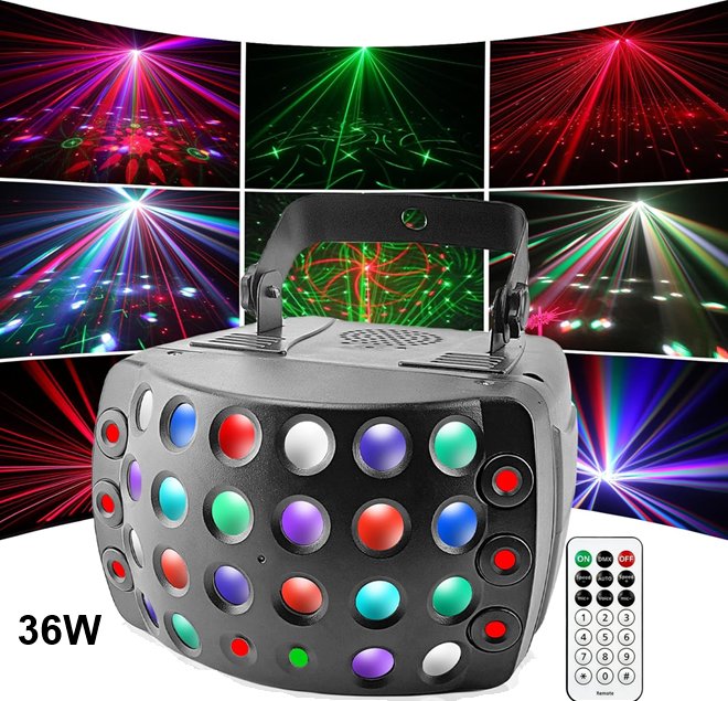 eagou double rain disco light with 20 different light combinations and remote control- DMX512 compatible - 36W