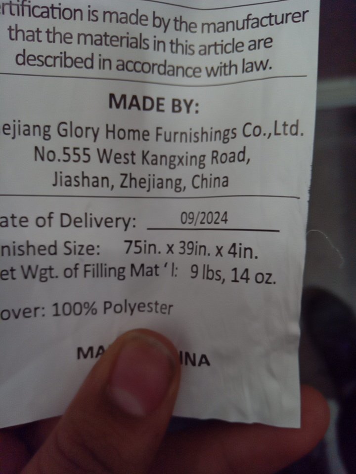 memory foam tri folding sofa mattress with ultra soft washable ribbed fur cover - 75" x 39" x 4" - grey