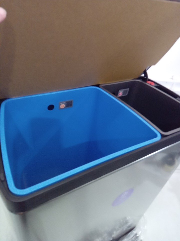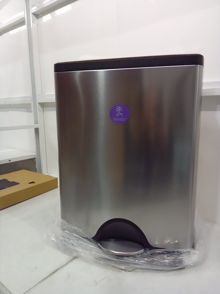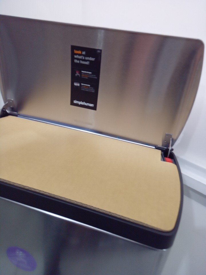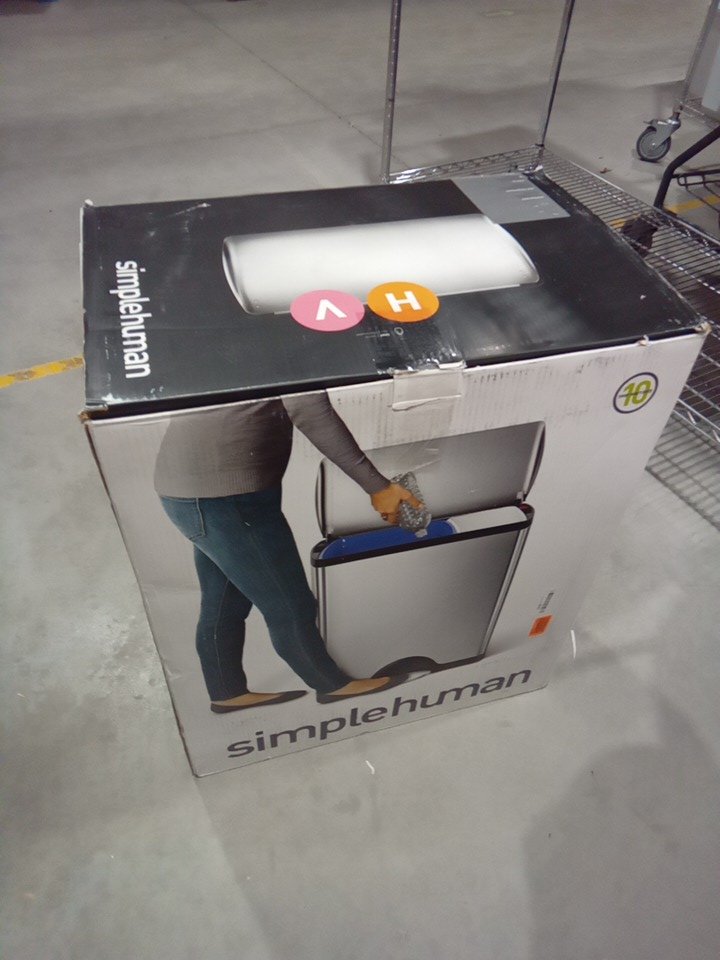 SIMPLEHUMAN 46L STAINLESS STEEL DUAL COMPARTMENT RECTANGULAR RECYCLE AND TRASH BIN - SLOW AND SILENT CLOSE LID - SILVER (MODEL: CW1830)