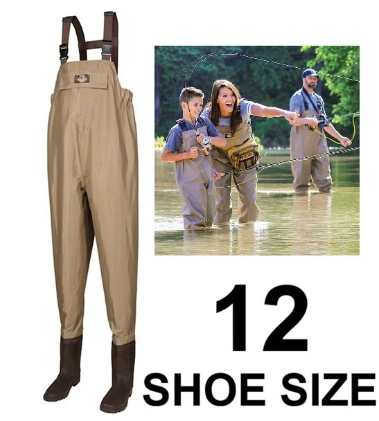 These waders are designed to fit loosely on somebody with a men's shoe size 12, please refer to the size chart in the photos for specific measurements.