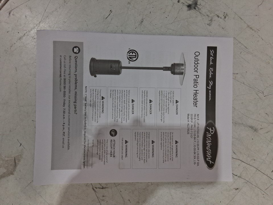 Paramount Stainless Propane Patio Heater - 46,000 BTU - 90.5" x 33.5" - brown/silver (MODEL: kld7002ss)