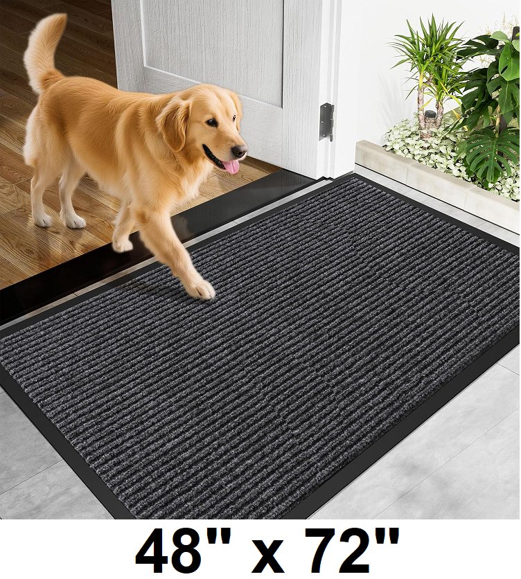 futurwit heavy duty absorbent indoor/outdoor front entryway mat - 48" x 72" - black/grey