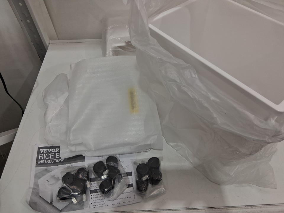 3PK VEVOR RICE BUCKET, INGREDIENT/FLOUR BINS with WHEELS, 6.6GAL - WHITE (MODEL: ‎ISB16899)