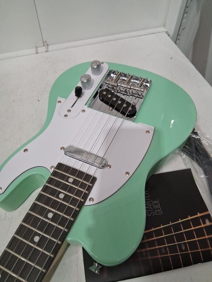 LYXPRO ELECTRIC TELECASTER RIGHT HANDED GUITAR - SOLID PAULOWNIA WOOD BODY - 30'' - SEAFOAM GREEN