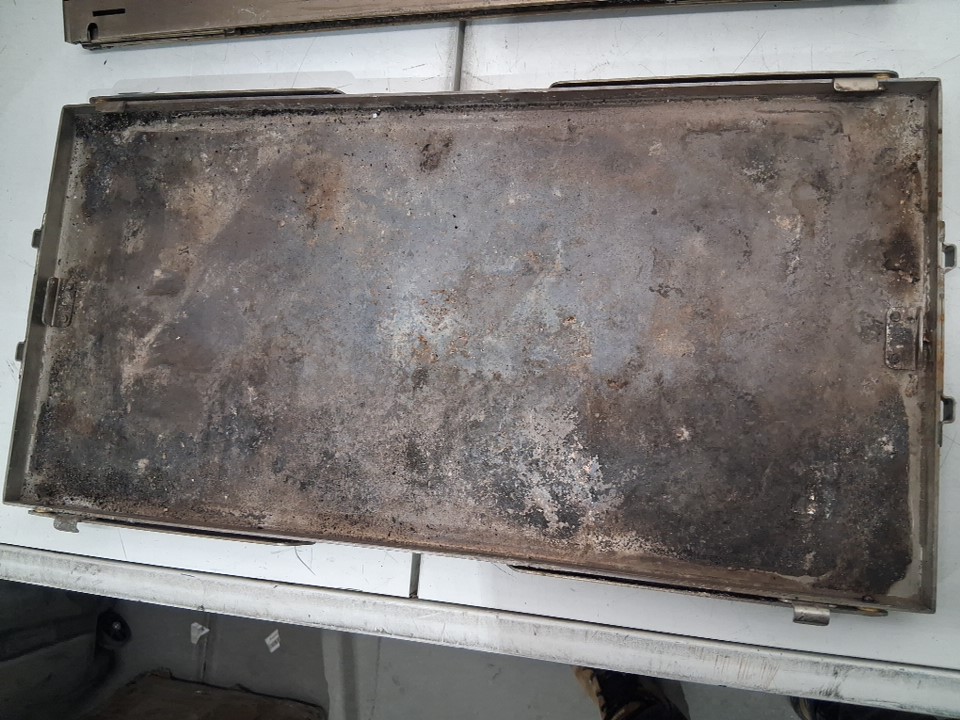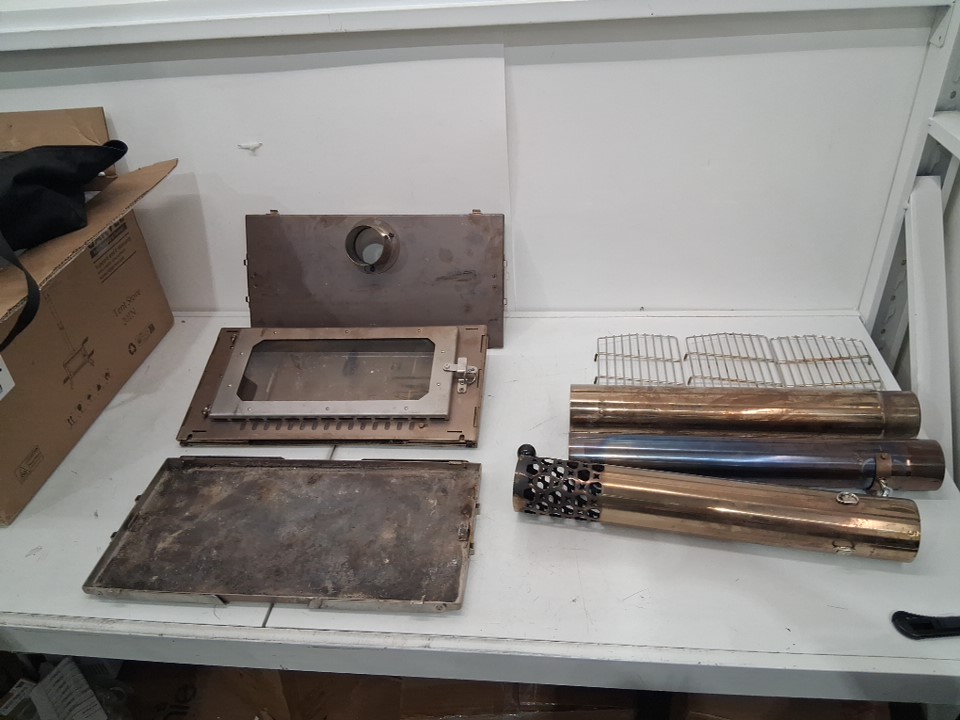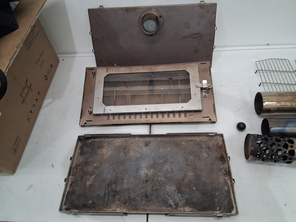 Stove is visibly used, has carbon stains and ash on tray. Also has smokey smell