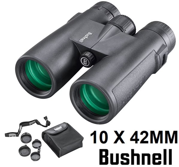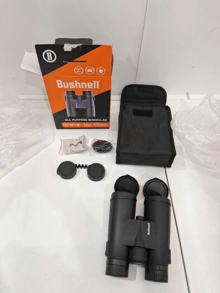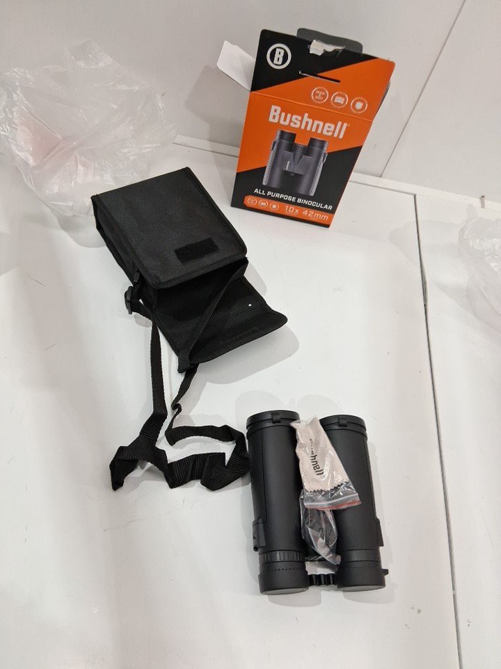 bushnell all purpose 10X42MM BINOCULARS WITH SPUDZ Cleaning Cloth AND CARRY CASE (model: 210142R)