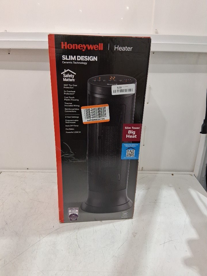 HONEYWELL SLIM CERAMIC TOWER SPACE HEATER with two heat settings and Overheat & Tip-Over protection - 23"- black (MODEL: HCE317BC)