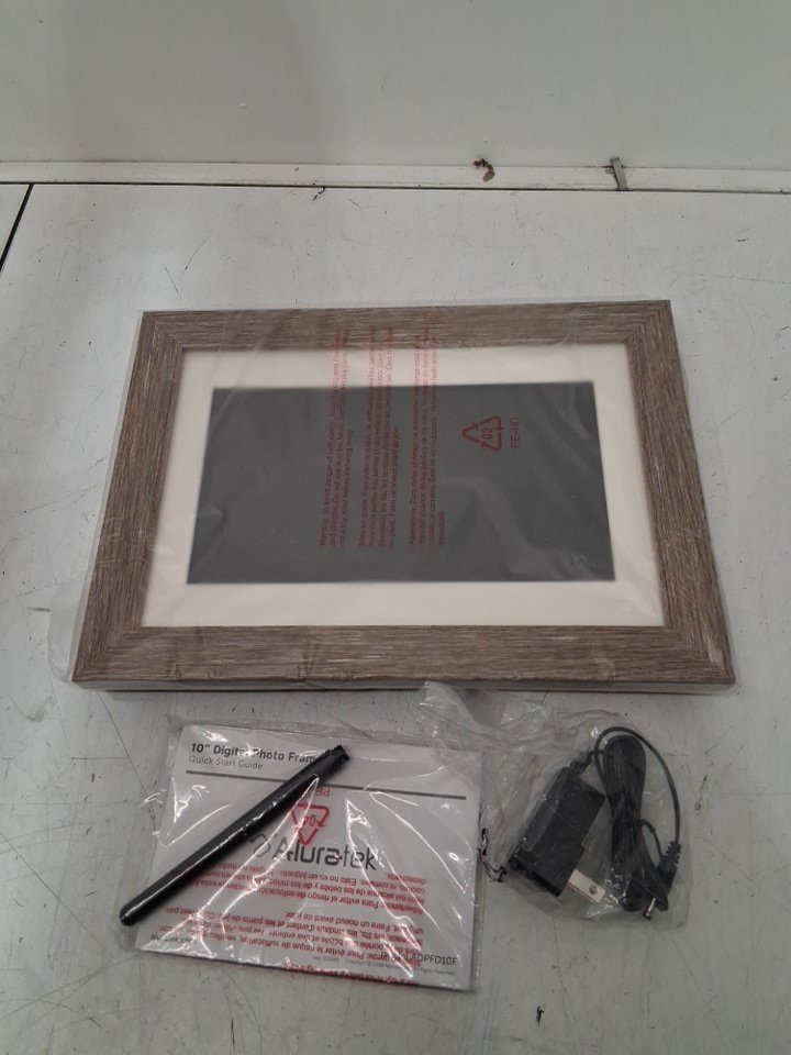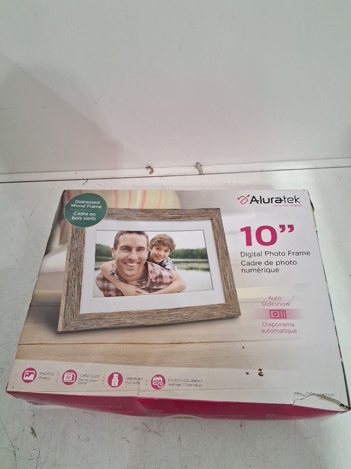 Aluratek TABLETOP/WALL-MOUNT DIGITAL PHOTO FRAME WITH AUTO SLIDESHOW - 10" - 1024 X 600, 16: 9 ASPECT RATIO - DISTRESSED WOOD (MODEL: ADPFD10F)