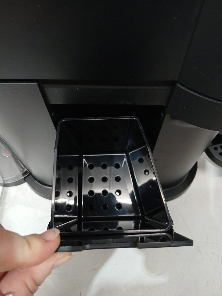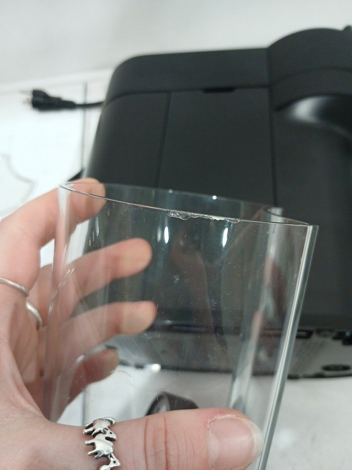 there is faint spotting/coffee residue present, & the top of the water tank is slightly chipped (won't affect function)