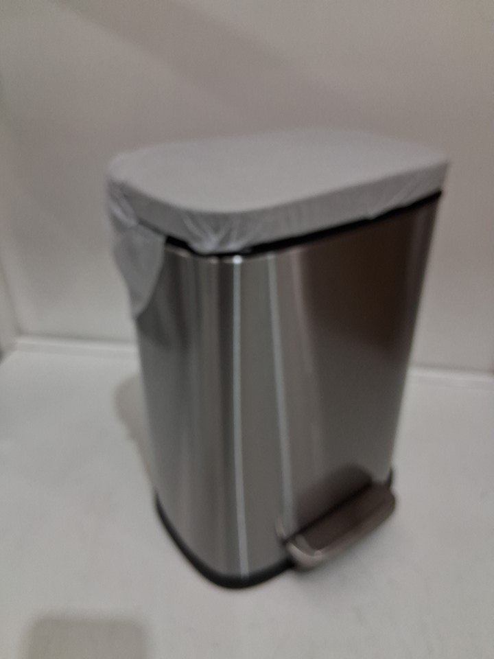 AMAZONBASICS rectangle SOFT-CLOSE TRASH CAN WITH PEDAL - 5L/1.32GAL - SATIN NICKEL