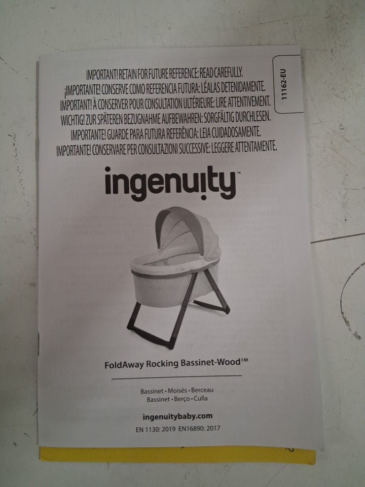 INGENUITY FOLDAWAY ROCKING WOOD BASSINET - FOR 0M-5M INFANTS - CARRINGTON STYLE (MODEL: 11162)