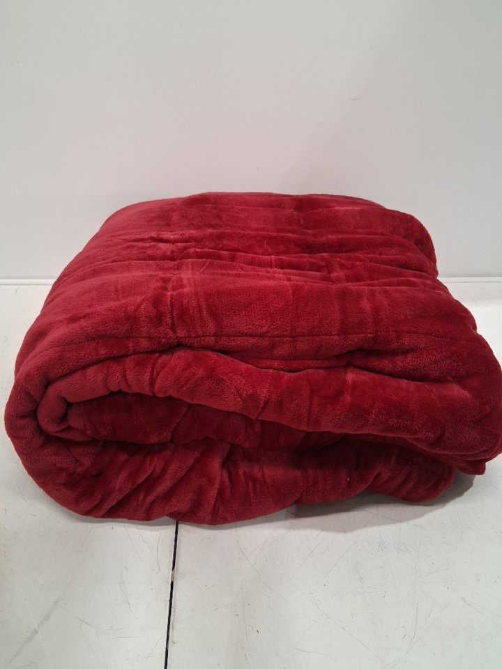 FLANNEL & SHERPA WEIGHTED COMFORT BLANKET - 60" x 80": 20LB - BURGUNDY RED