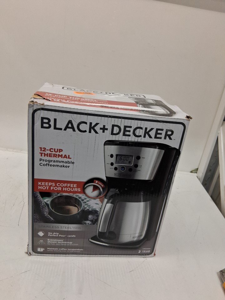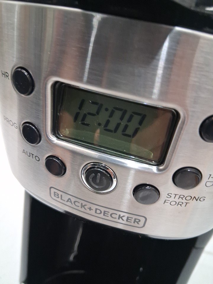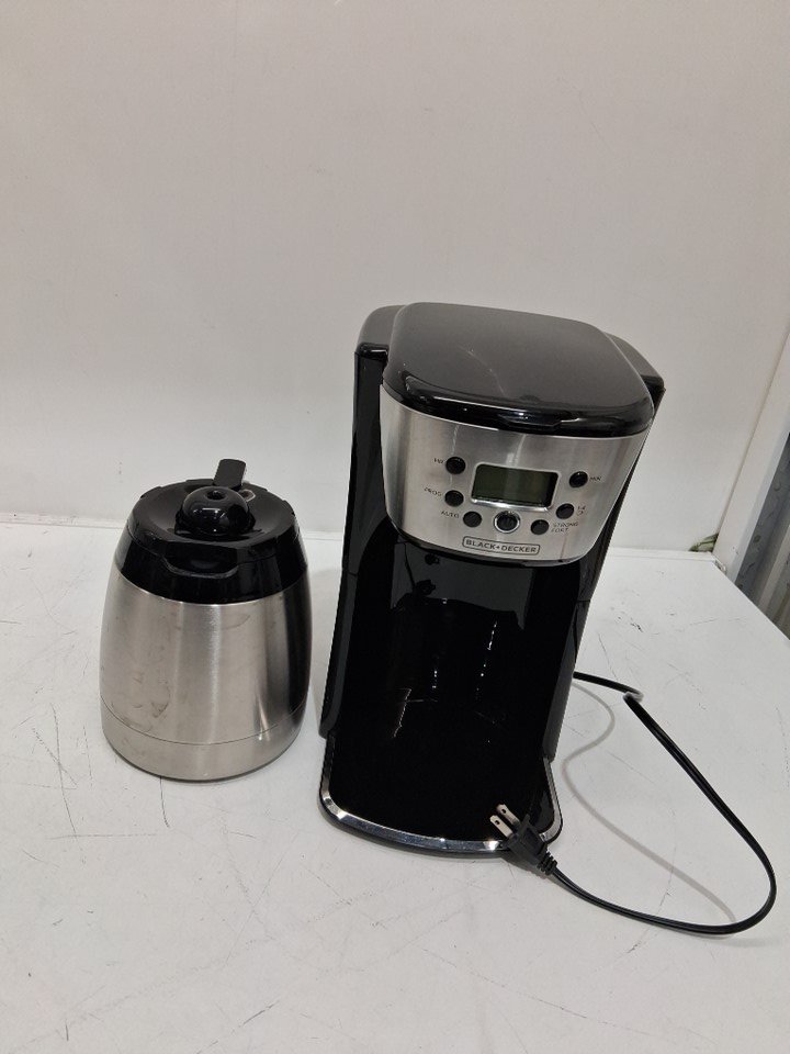 Tested for basic power only. Item has light coffee and water marks from previous use. The pour spout of the carafe is broken, see photos for reference