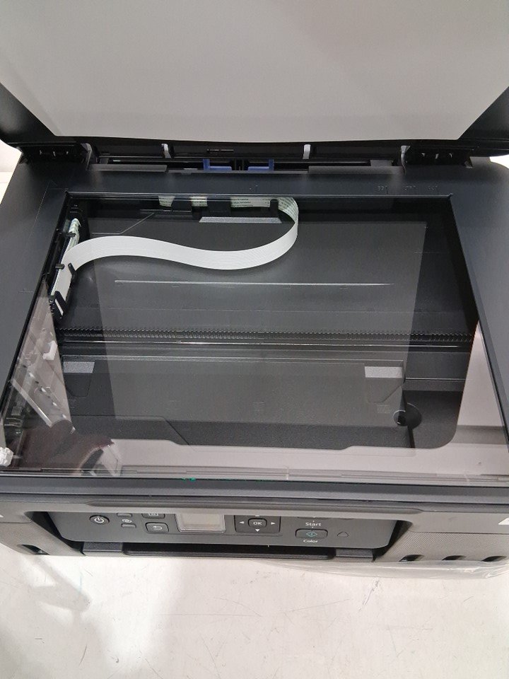 there is some finger print marks on the scanner portion as well as it appears the ink cartridges have been open. tested for power only.