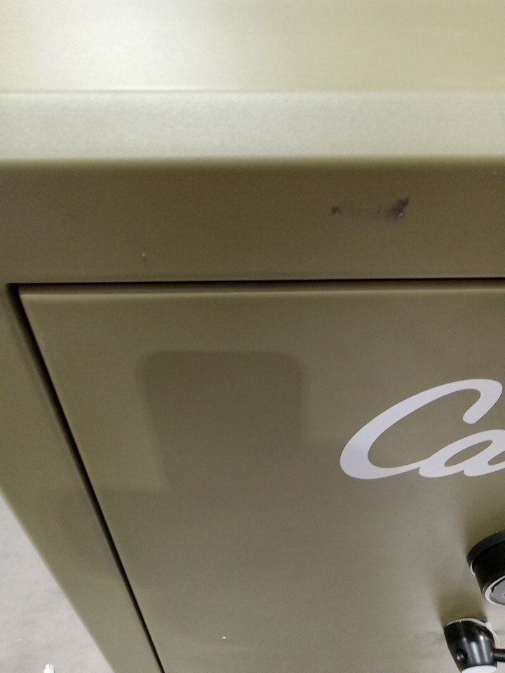 There are multiple dents/scuffs/scratches on various areas of the housing of the item as well as one foot is missing and a couple of the others are a little loose as a result from shipping. Customer will need to address this issue so that the safe will sit properly prior to using it. Item tested and working. See attached photos.
