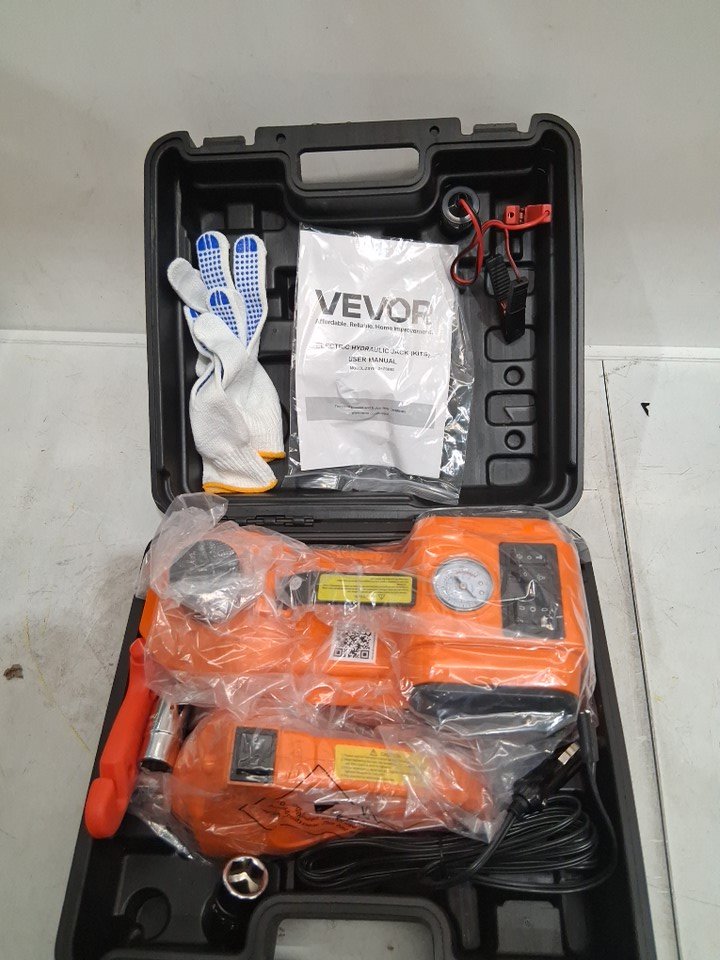 VEVOR 3-IN-1 5-TON ELECTRIC HYDRAULIC JACK WITH LED FLASHLIGHT & CARRY CASE , 150PSI MAX, DC LIGHTER POWERED CAR JACK, 12V SCISSOR JACK - ORANGE (MODEL: ZSY01-2)