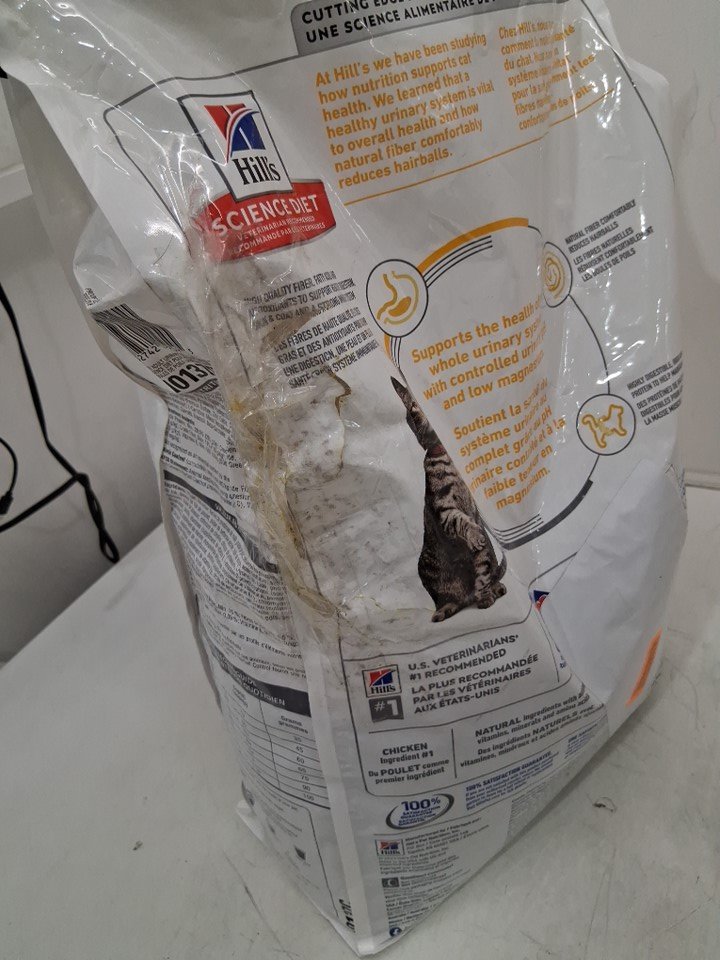 item was ripped in a side possibly due to shipping, has almost all of the product originally item is 15.5lbs, please refer to pictures