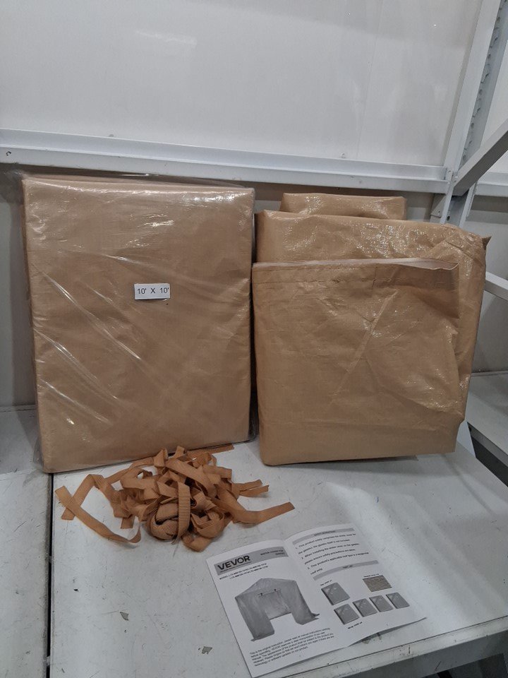 VEVOR All-Weather Winter Gazebo Cover with with Sidewalls & Mesh Windows, High-Density PE Material, Enclosed Storage Shelter Covers - for 10FT x 10FT Hardtop Gazebos - Beige/BROWN (Model: LTD-MM180-1010)