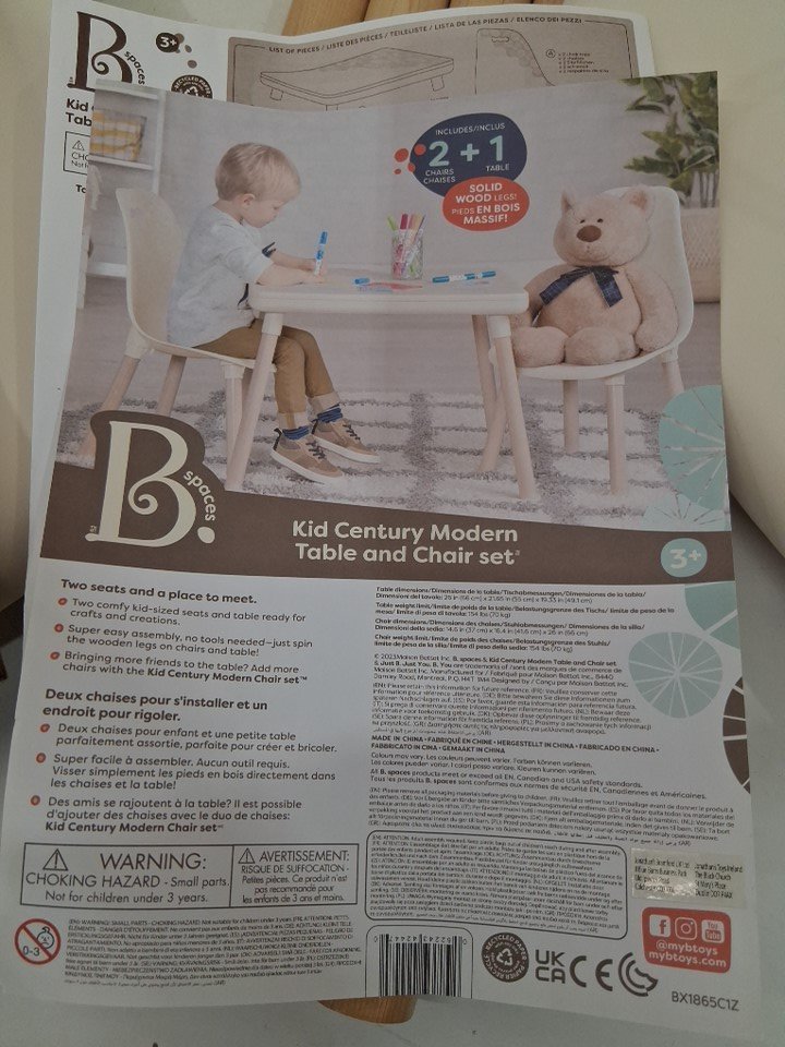 B. Toys TODDLER TABLE AND CHAIR SET - NATURAL WOOD LEGS - IVORY