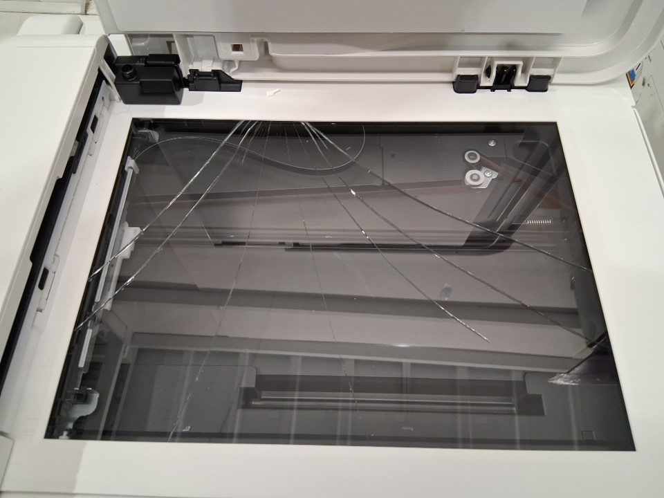 Please note that the glass for the scanner is cracked (see photos) Tested for power