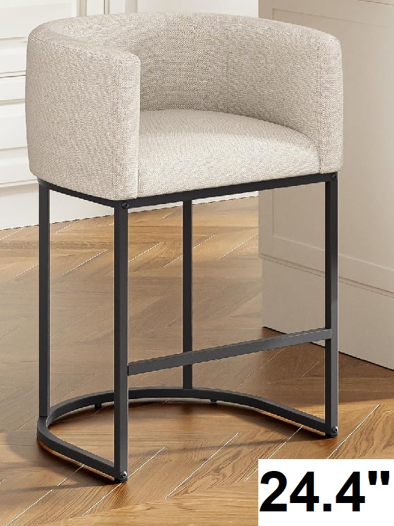 VATROS Modern Barrel Linen Fabric Upholstered Counter Height Bar Stool - 24.4" - beige (model: dmt-6-882w)