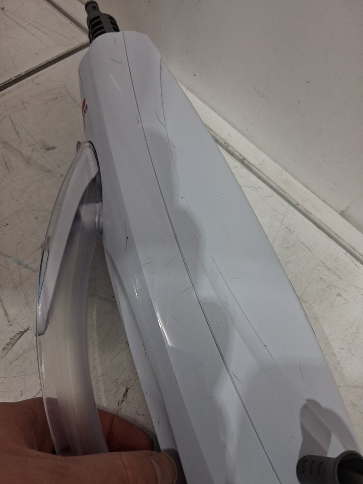 water marks on item / hair on item indicating prior use item is missing the cloth head to the mop