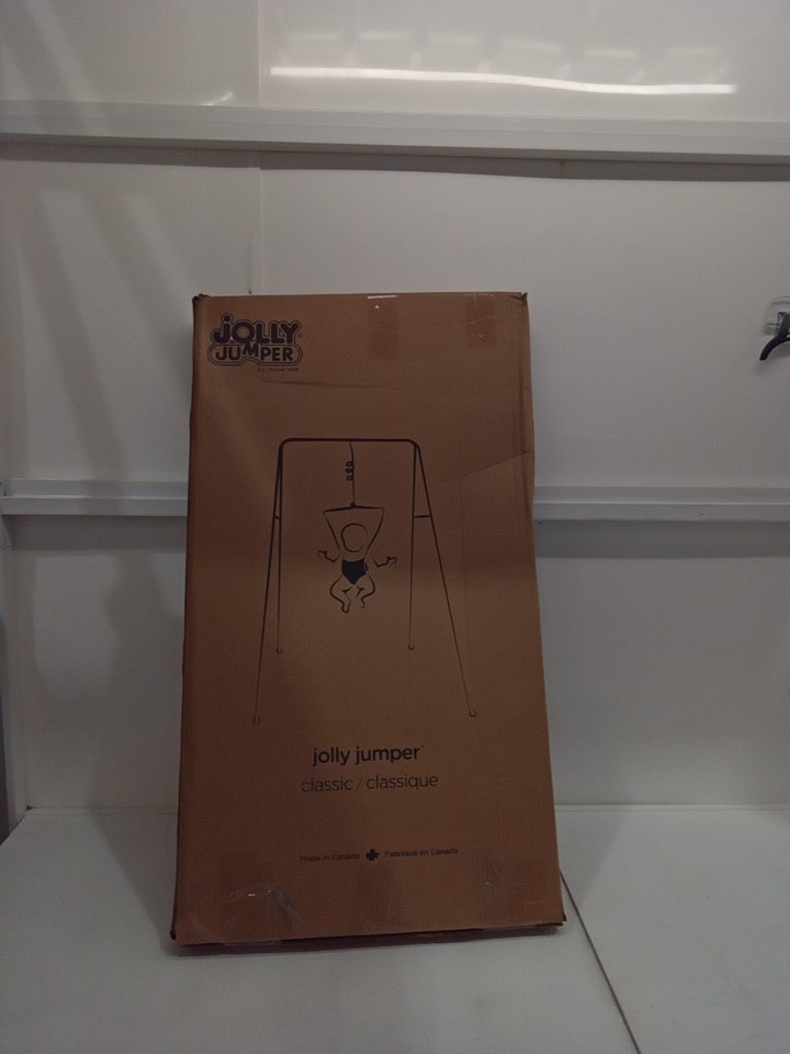 Jolly Jumper Classic Portable Baby Exerciser With Grey Fabric Saddle - 28 LBS Max - White/Grey (Model: 109)