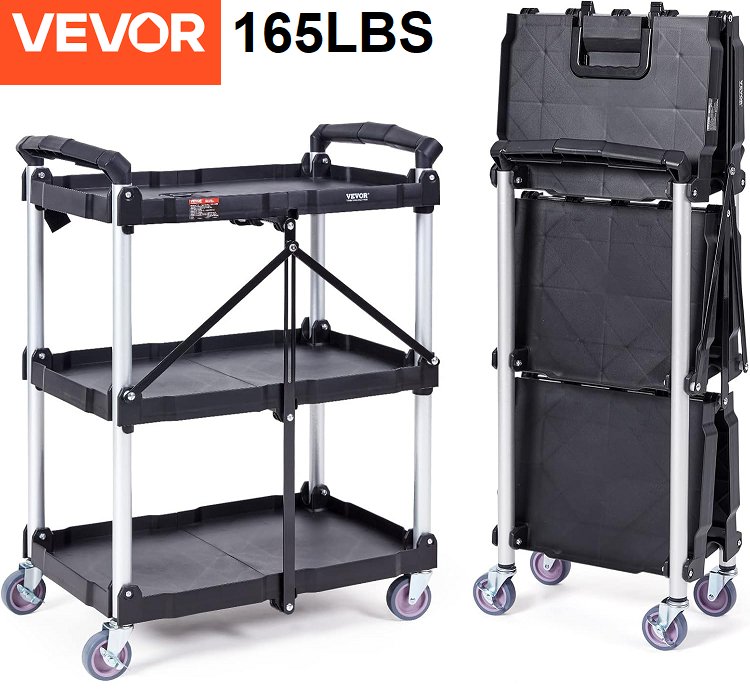 VEVOR Foldable Utility Service Cart Heavy Duty - 165LBS - BLACK (MODEL: JY-UC02C)