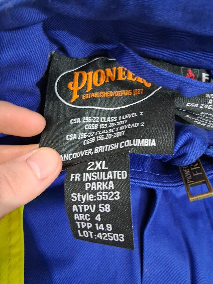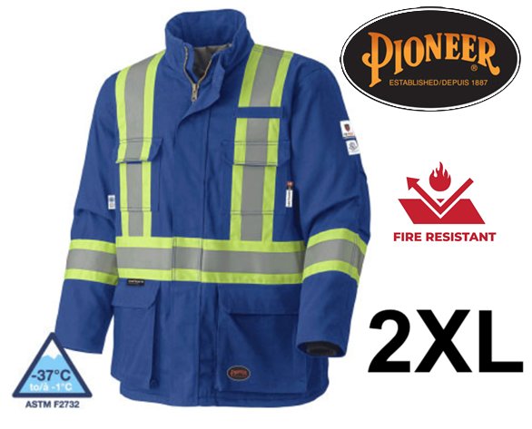 MENS PIONEER HIGH VISIBILITY 100% COTTON FLAME RESISTANT TECH QUILTED SAFETY PARKA - 2XL - ROYAL BLUE (STYLE: 5523)