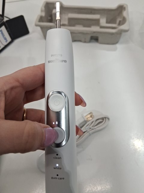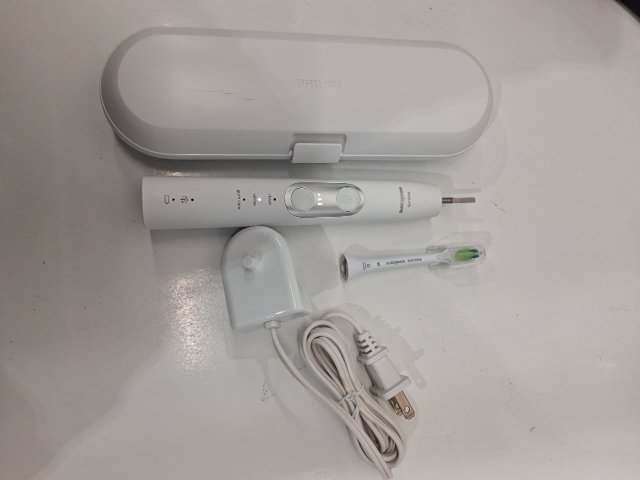 There is a bit of toothpaste residue on the brush handle and one of the included brush heads came opened. tested for power.