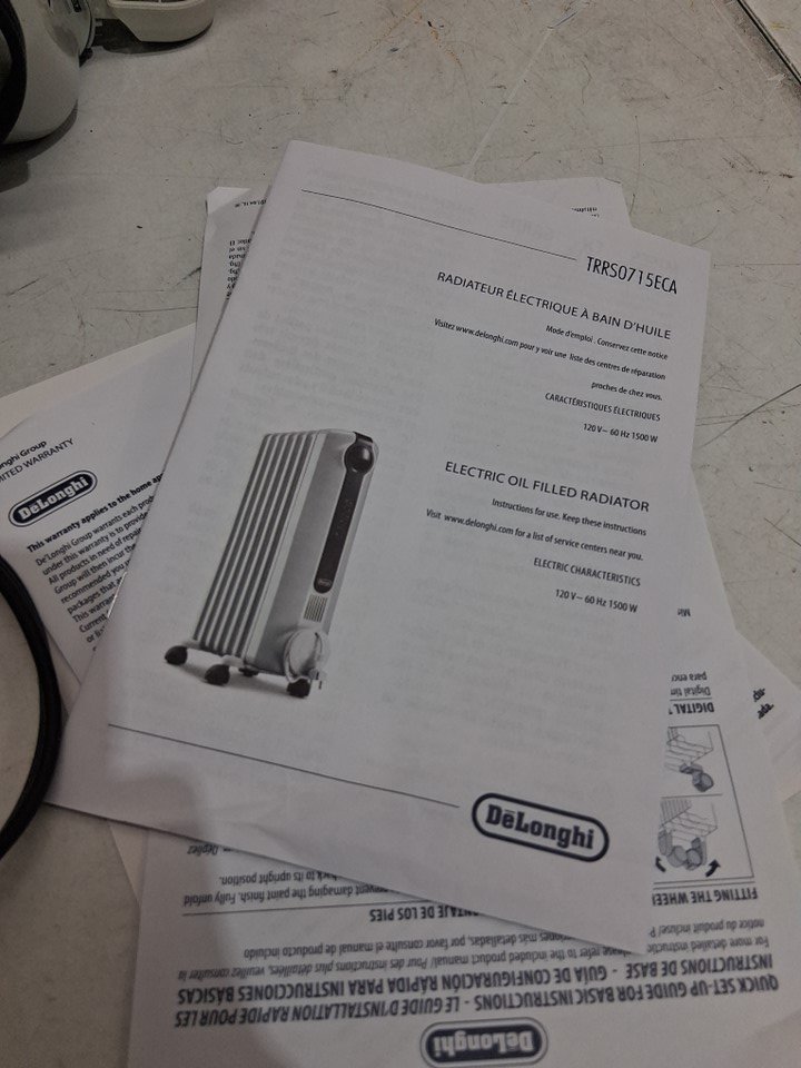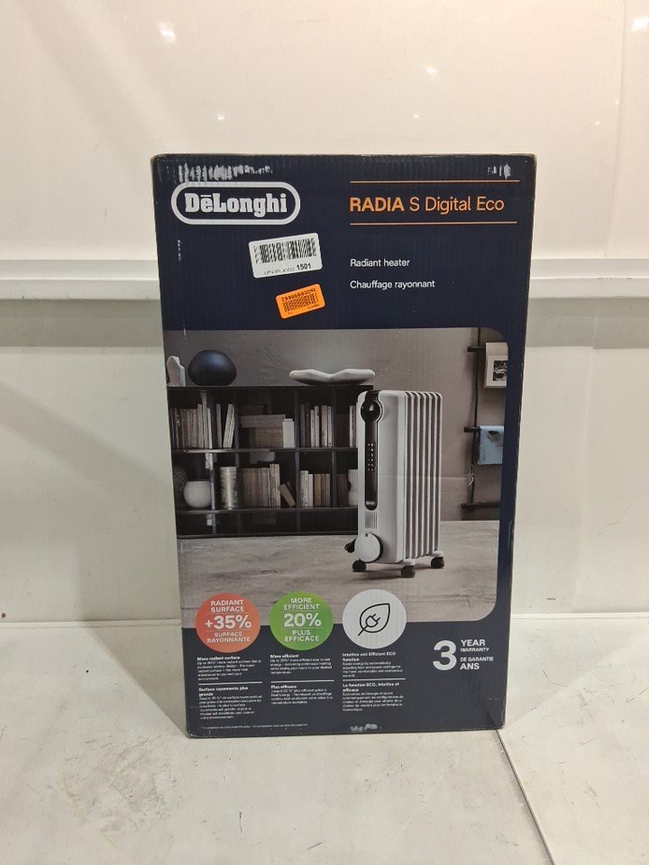 DELONGHI RADIAS OIL FILLED RADIATOR, ECO DIGITAL FULL ROOM RADIANT ELECTRIC SPACE HEATER - LIGHT GREY (MODEL:TRRS0715ECA)