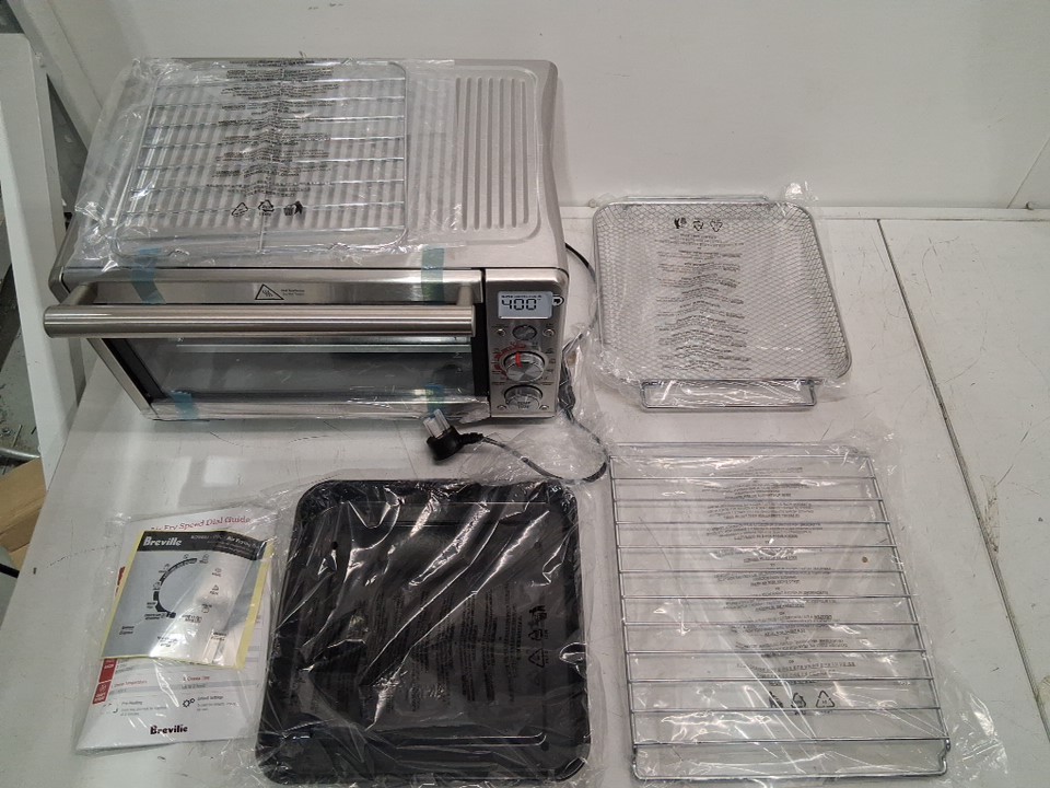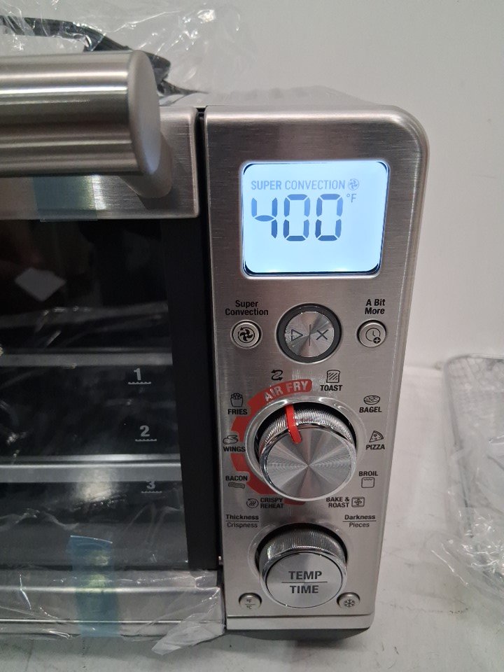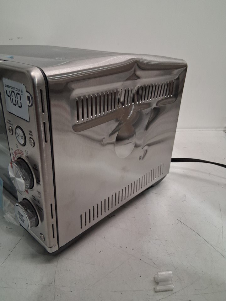 There is a fairly big dent on the right side of the smart oven. Tested for power.