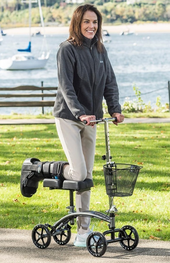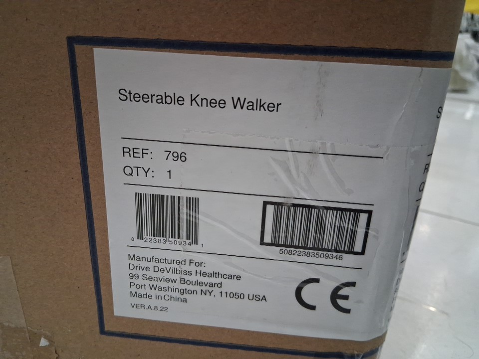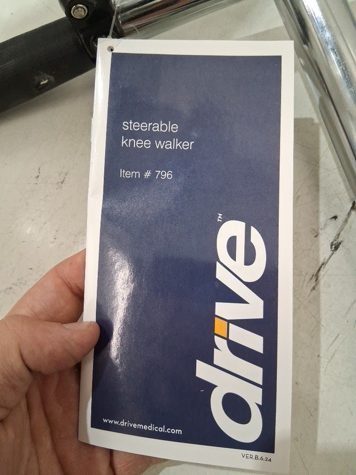 drive medical adjustable height steerable knee walker crutch alternative with hand brake and basket - 300lb cap, 8" wheels - black - (model: 796)
