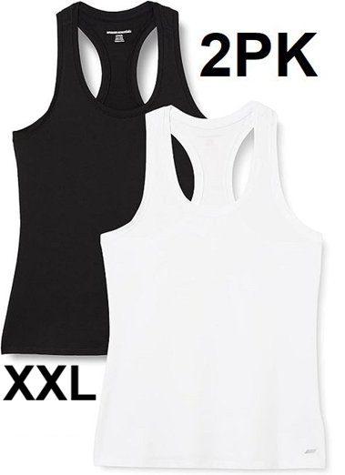 2PK Women's Amazon Essentials Tech Stretch Racerback Tank Top - XXL - BLACK/white (STYLE: AZ0003)