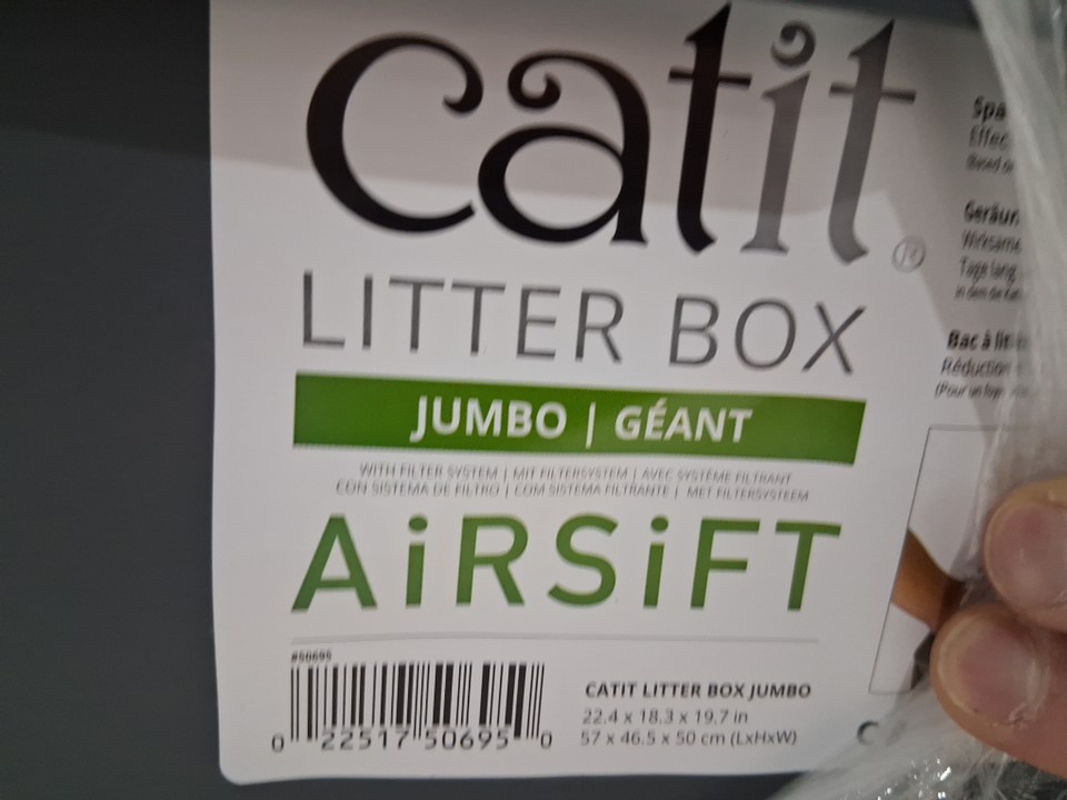 CATIT CLEAN JUMBO HOODED LITTER BOX WITH AIRSIFT AIR FILTER - 22.4" x 18.3" x 19.7" - GREY/white (model: 50695)