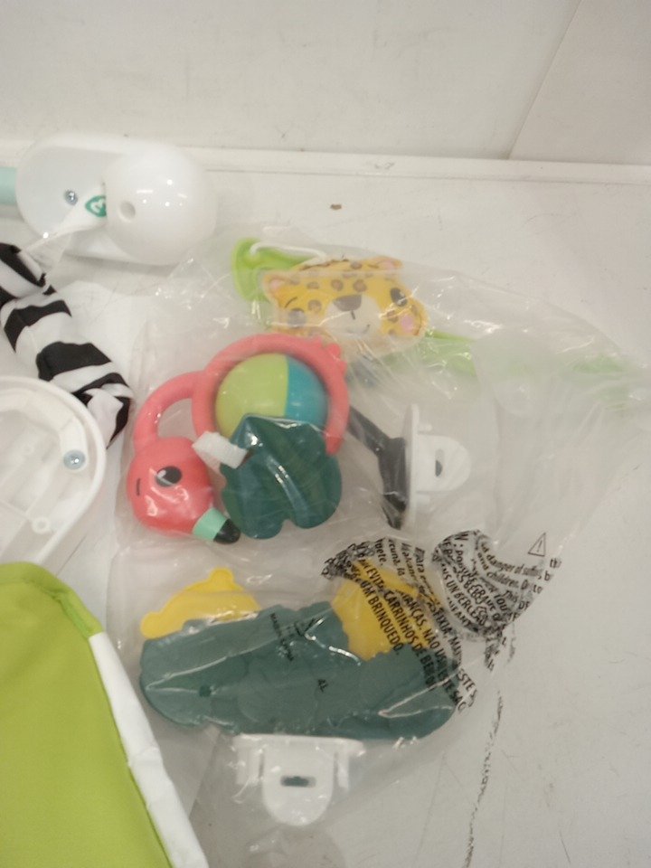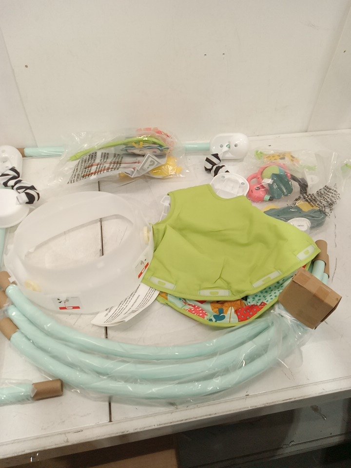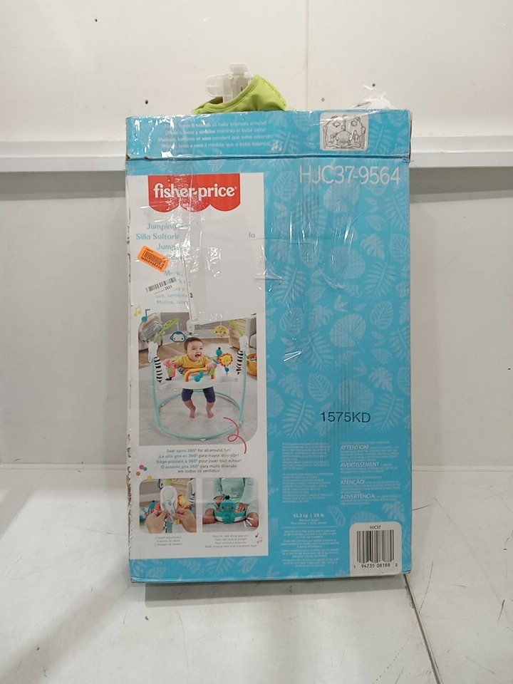 Fisher-Price Jumperoo Interactive Bouncer Baby Activity Center with Lights Sounds and Music - Jumping Jungle/Mint Blue/Green (model: HJC37-9564)