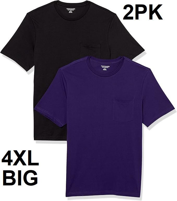 2pk mens amazon essentials Crewneck Pocket shirt - 4xl big - purple/black