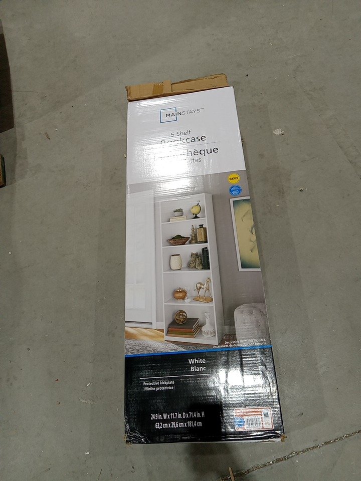 Mainstays 5-Shelf Bookcase with Adjustable Shelves - 24.9" x 11.7" x 71.4" - WHITE (MODEL: MS19-D1-1009-25)